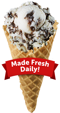 Our Fudge Ripple Ice Cream is a decadent combination of our creamy, homemade vanilla ice cream with swirls of chocolate rich fudge.