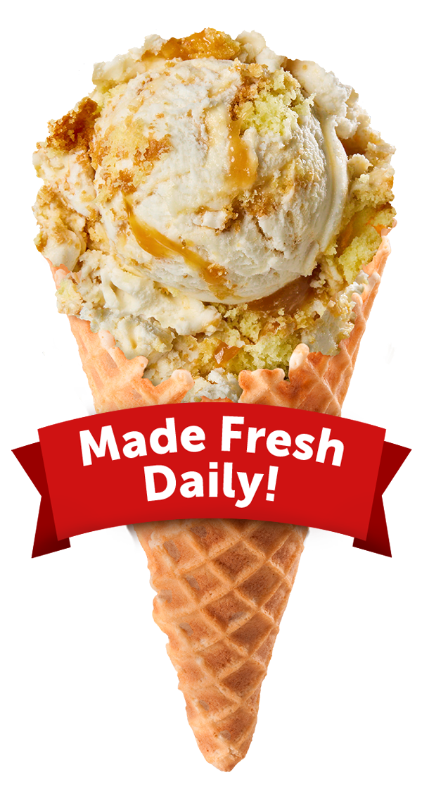 Vanilla Ice Cream with Buttery Cake Pieces Rippled with Butterscotch and Caramel