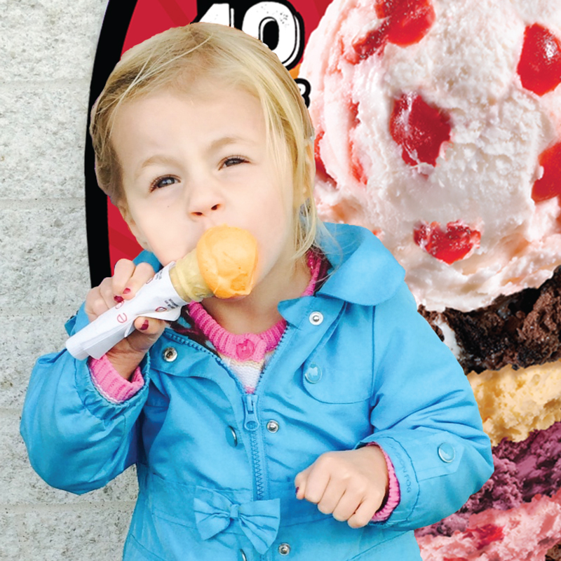 When it comes to delighting our customers, we don’t like to leave anyone out. And we’ve found that the rich, satisfying taste of fresh ice cream isn’t lost on the youngest of our patrons. So to keep your smallest family member (less than 40 inches tall) enchanted, we’ll provide them with a free* Baby Cone. *Participating stores only, offer may vary.